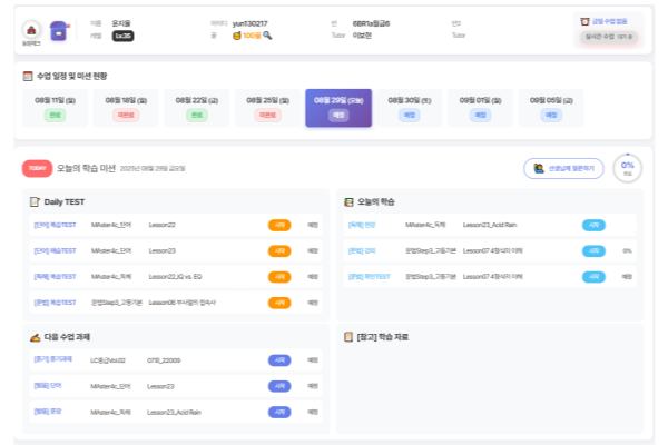 학생별 학습 진도, 과제 수행, 성취도 등을 실시간으로 기록하여 맞춤형 밀착 관리를 실현합니다.